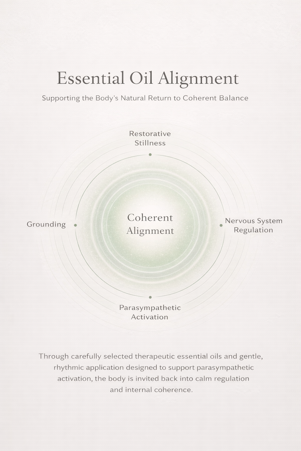 A 45-minute structured essential oil application session designed to support nervous system coherent balance, immune resilience, and deep relaxation.