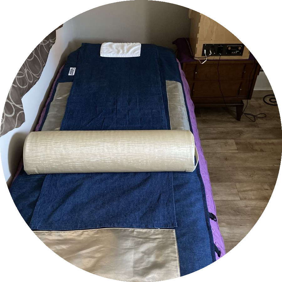 A frequency + vibration mat used to open the body and calm the nervous system during deeper healing work.