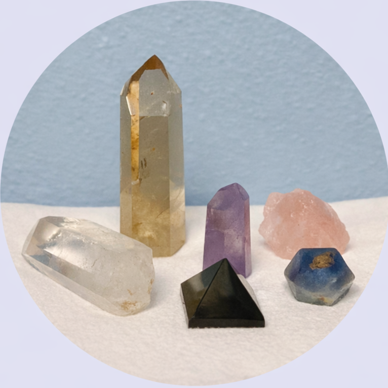 Natural crystals and stones, each carrying its own frequency, presence, and purpose, thoughtfully chosen through guidance and intuition.